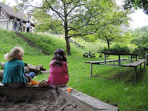 Unmittelbar in Wald- und Bachnähe befindet sich die Spielwiese des Quartiertreffs mit Kletterbaum, Weidenhäuschen, Sandkasten und Spielkiste. Zur Sicherheit der Kinder ist das Gelände eingezäunt. Nach Absprache können Sie die Spielwiese bei einer Raummiete mitbenützen.