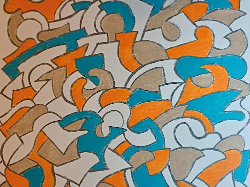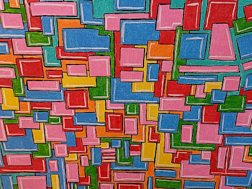 Seine Bilder strahlen Intensität aus: Sie erinnern an Pop-Art, sind oft abstrakt und voller überraschender Elemente, manchmal tauchen Figuren auf, manchmal reduziert er Farbe und Form.
